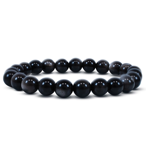 Браслет з натурального сріблястого обсидіану поєднує в собі простоту форми з тонким символізмом. Темний, графітово-металічний відтінок каменів робить його ідеальним для повсякденного вбрання, додаючи нотку унікальності. Злегка мерехтливі намистини нанизані на еластичний, зручний шнур, що дозволяє браслету добре облягати зап'ястя і супроводжувати вас протягом усього дня. Природне походження каменю і приписувана йому енергетика роблять його більше, ніж просто декоративною прикрасою - він стає делікатним талісманом, що підтримує спокій, внутрішній мир і відчуття безпеки.
