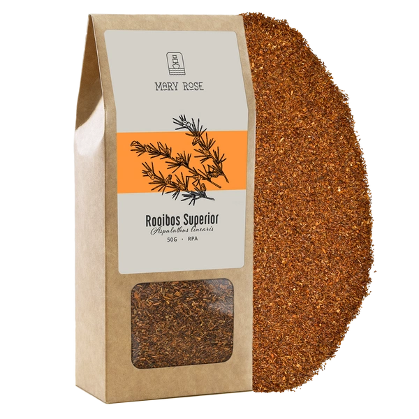 - Чай Rooibos Superior виготовляється з африканського ройбушу, вирощеного в регіоні Cedarberg у Південній Африці. Настій характеризується характерним бурштиновим кольором і тонким ароматом з чудовим медовим відтінком.
