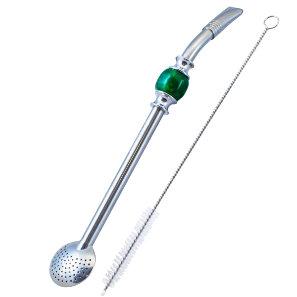 Duża бомбілія do yerba mate z kolorowym pierścieniem chłodzącym przy ustniku. Stal nierdzewna zapewnia trwałość i odporność na uszkodzenia mechaniczne i wysokie temperatury. Prosty design nadaje elegancji i funkcjonalności. W Наборie ze specjalnym czyścikiem.