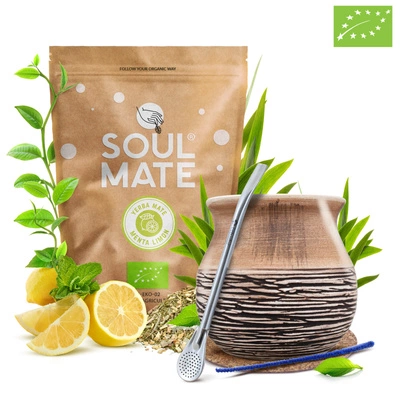 Набір Єрба-Мате Soul Mate Organica Menta Limon 500г 0,5кг Калабаш + Бомбілла