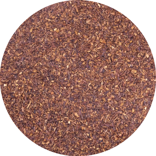 Ройбуш (Aspalathus linearis), також відомий як червоний кущ, є природною альтернативою класичним листовим чаям. Він має м'який, злегка медовий смак і глибокий червонувато-бурштиновий колір. Він не містить кофеїну, тому чудово підходить як напій у будь-який час доби - навіть увечері.