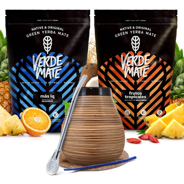Набір Єрба Мате Verde Mate Yaguar з керамічного калабашу Coconut bombilla